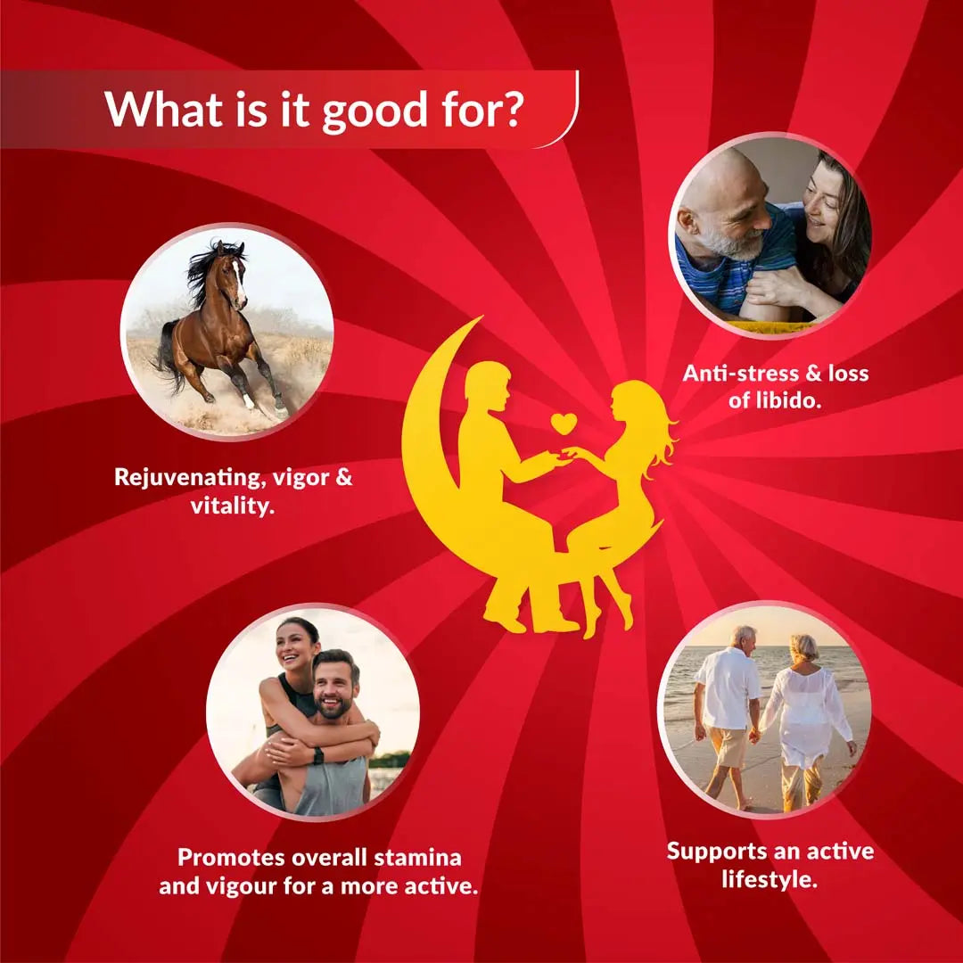 - Kapikachhu : 100 mg - Increases dopamine, reduces stress, enhances libido and muscle strength